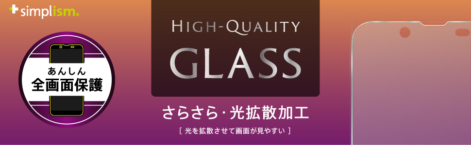 ディスプレイ全面を守る、端まで貼れるフルカバータイプです。色付フレーム無しで、端まで透明クリアのまま保護します。