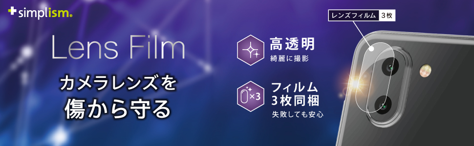 カメラレンズを傷から守る、カメラ撮影時に影響をおよぼさない透明度の高い保護フィルムです。