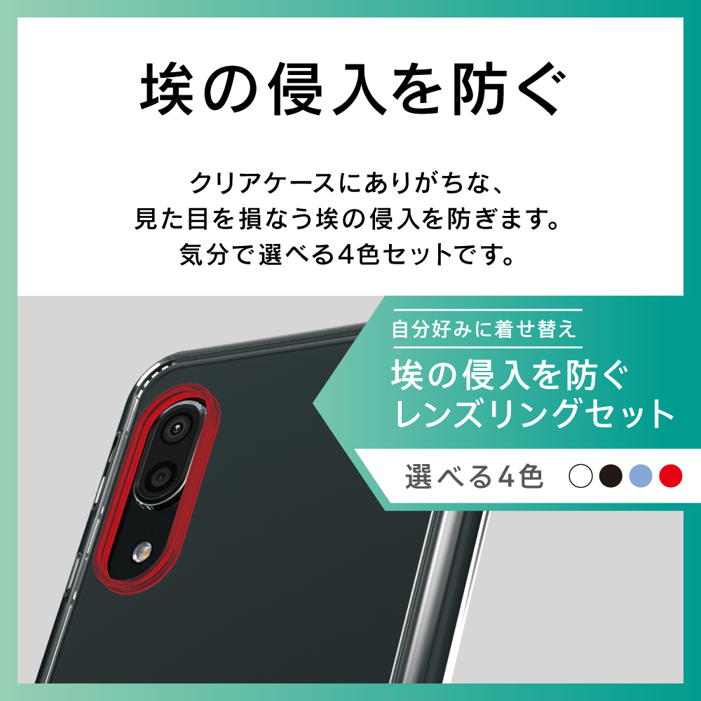 背面は堅い素材で傷から守り、側面はやわらか素材で衝撃から守る、ハイブリッド構造のクリアケースです。埃が隙間に入らないレンズリングを搭載しています。 ※ケースが1つ、レンズリングが4つのセットです