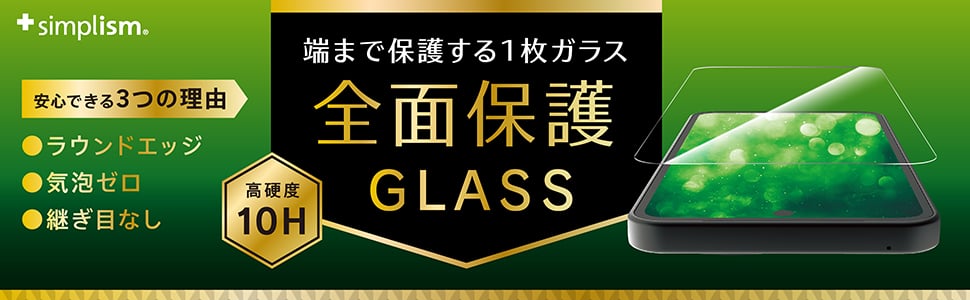 端末との一体感が美しい、継ぎ目のない一枚ガラスです。端をなめらかに加工した全画面保護のガラスプロテクターです。