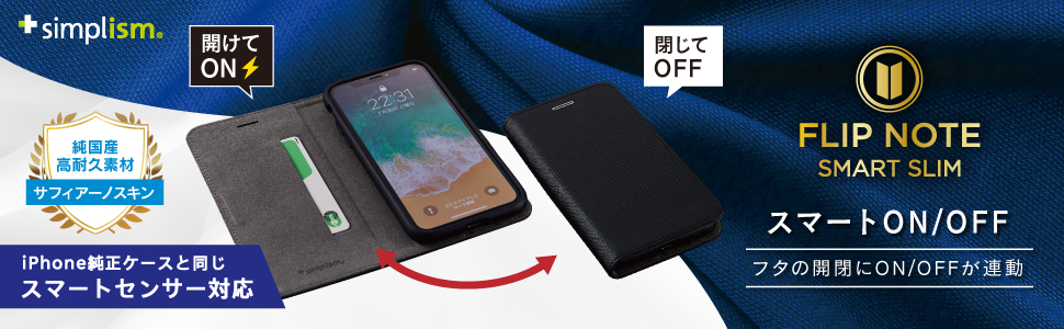 for iPhone [FlipNote Smart] 耐衝撃フリップノートケース スマートON/OFF (サフィアーノ)(販売終了)
