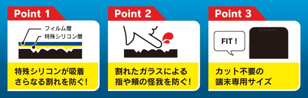 ・ガラスのヒビの拡大や指先の怪我などを一時的に防ぐためのフィルムです。画面のヒビを接着したり修復する機能はありませんので、お早めの本体修理をお勧めいたします。・一度貼り付けたフィルムを剥がすことはできません。割れたガラス破片がフィルムと一緒に剥がれてしまう恐れがあります。剥がす際の画面の破損・損傷については責任を負いかねますので、ご了承ください。