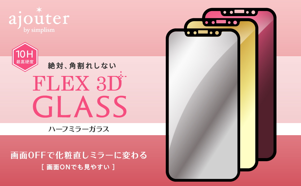 PETフレーム+ガラスの複合素材で、ディスプレイをフルカバーする究極の立体成型最強プロテクター。鏡面仕様で画面をOFFにしてさっと身だしなみをチェックできます。