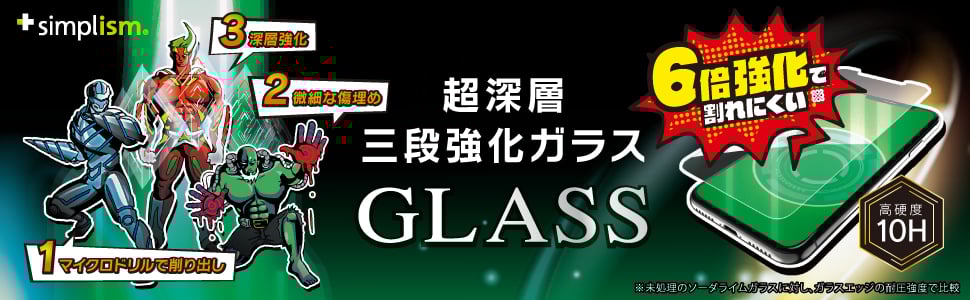 ガラスを深層まで強化した、こだわり製法のガラスプロテクターです。PETフレーム+ガラスの複合素材で「角割れ」しない構造です。
