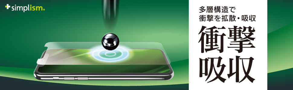 多層構造で衝撃を拡散・吸収、ディスプレイを守ります。鉄球を垂直に落とす耐久テストをクリアしています。 1層)AFPハードコート(耐摩擦コート) 2層)PET層(ベースフィルム) 3層)TPUフィルム(耐衝突コート) 4層)シリコン樹脂層(粘着層)
