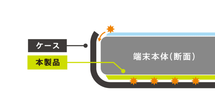 端末の背面に傷がつく原因の一つに、ケースとの隙間から混入する埃があり、その埃が端末とケースの中で擦れることにより傷をつけてしまいます。本製品を貼り付けることによって、端末に傷がつくことを防ぎます。