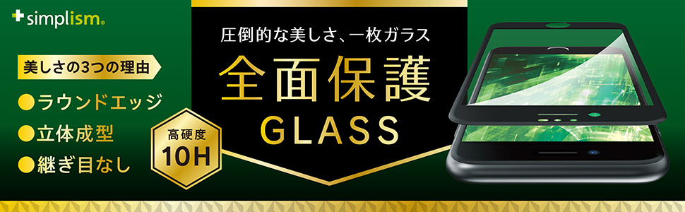 端をラウンドに沿うように曲面成形し、端末そのままの見た目を保ちます。一般的なフレームガラスよりもカバー範囲がより広いのが特徴。割れにくい、3D新製法を用いたガラスです。端まで守る、フルカバータイプ