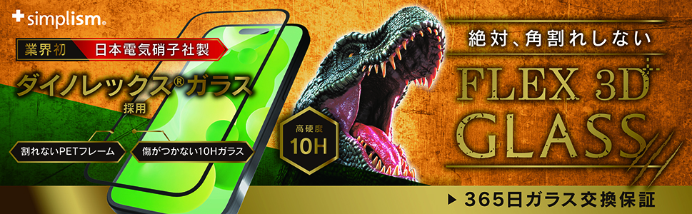 日本電気硝子社製「Dinorex®︎」業界初採用。PETフレーム+ガラスの複合素材で、ディスプレイをフルカバーする究極の立体成型最強プロテクターです。