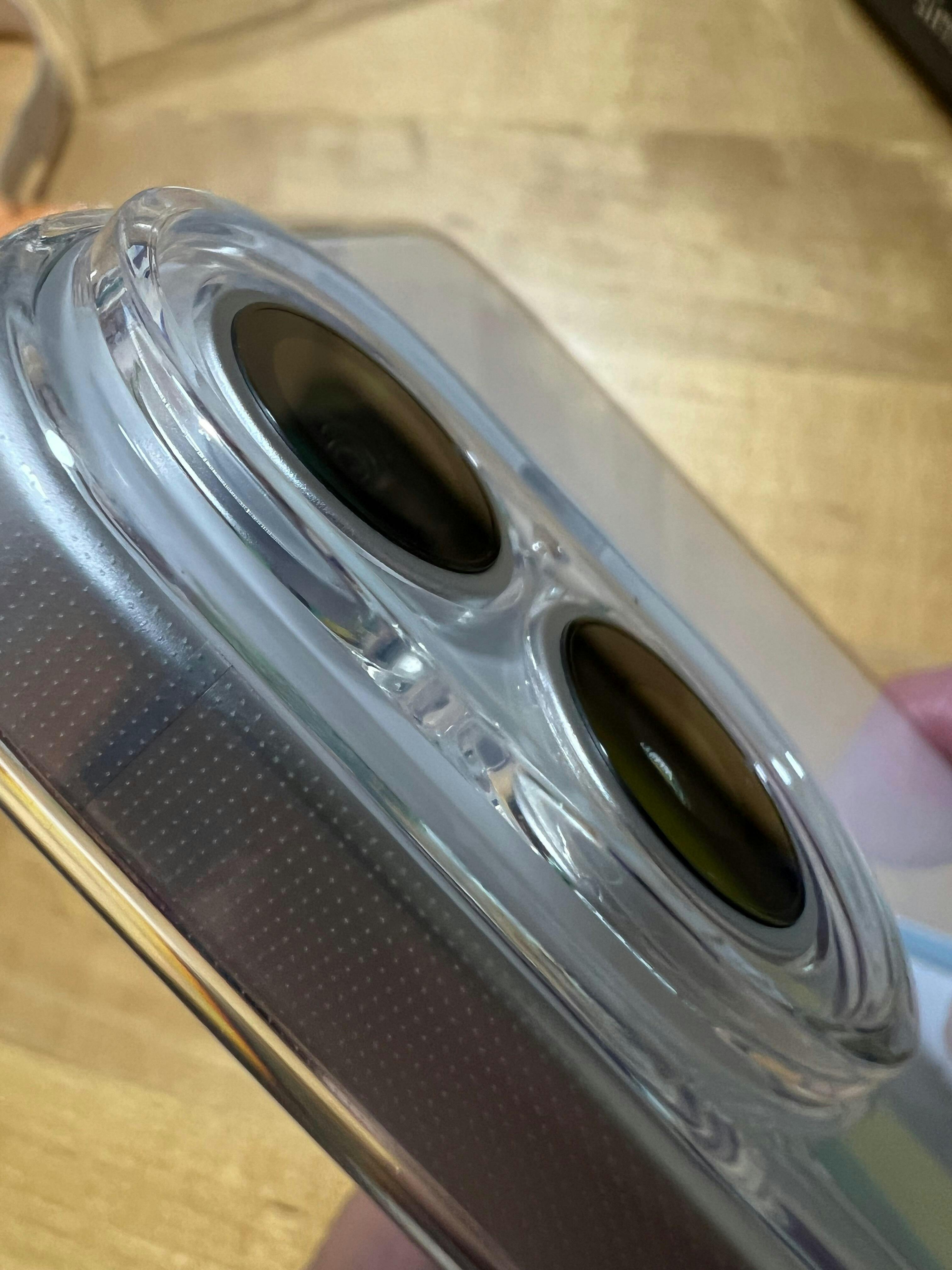 密着痕とは、透明ケースにおいて起こる、ケースと端末とが強く接する面の色が変わって見える現象です。 本製品は、カバー側面のTPU素材に「マイクロドット」と呼ばれる細かいドットの特殊加工を施すことで、端末とカバーとの接点を減らし、密着痕を出にくくしています。
